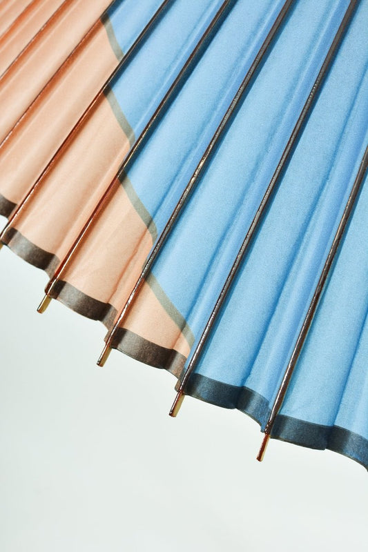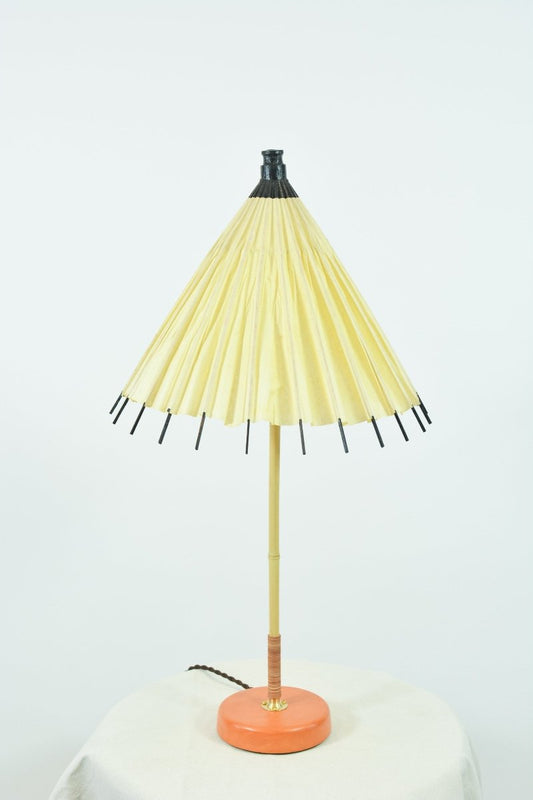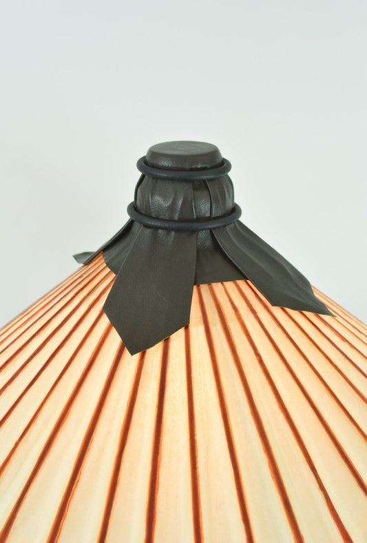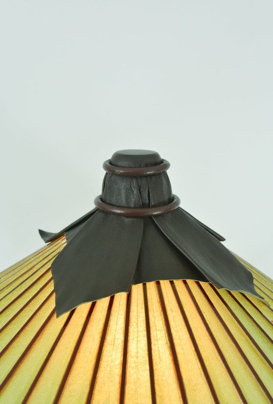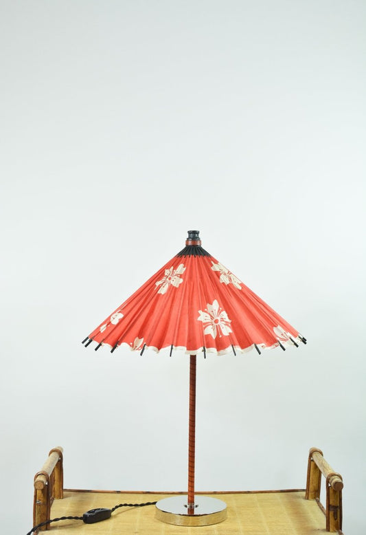 Aloha Modern Leather Table Lamp with Vintage Japanese Parasol Shade — Model No. 037