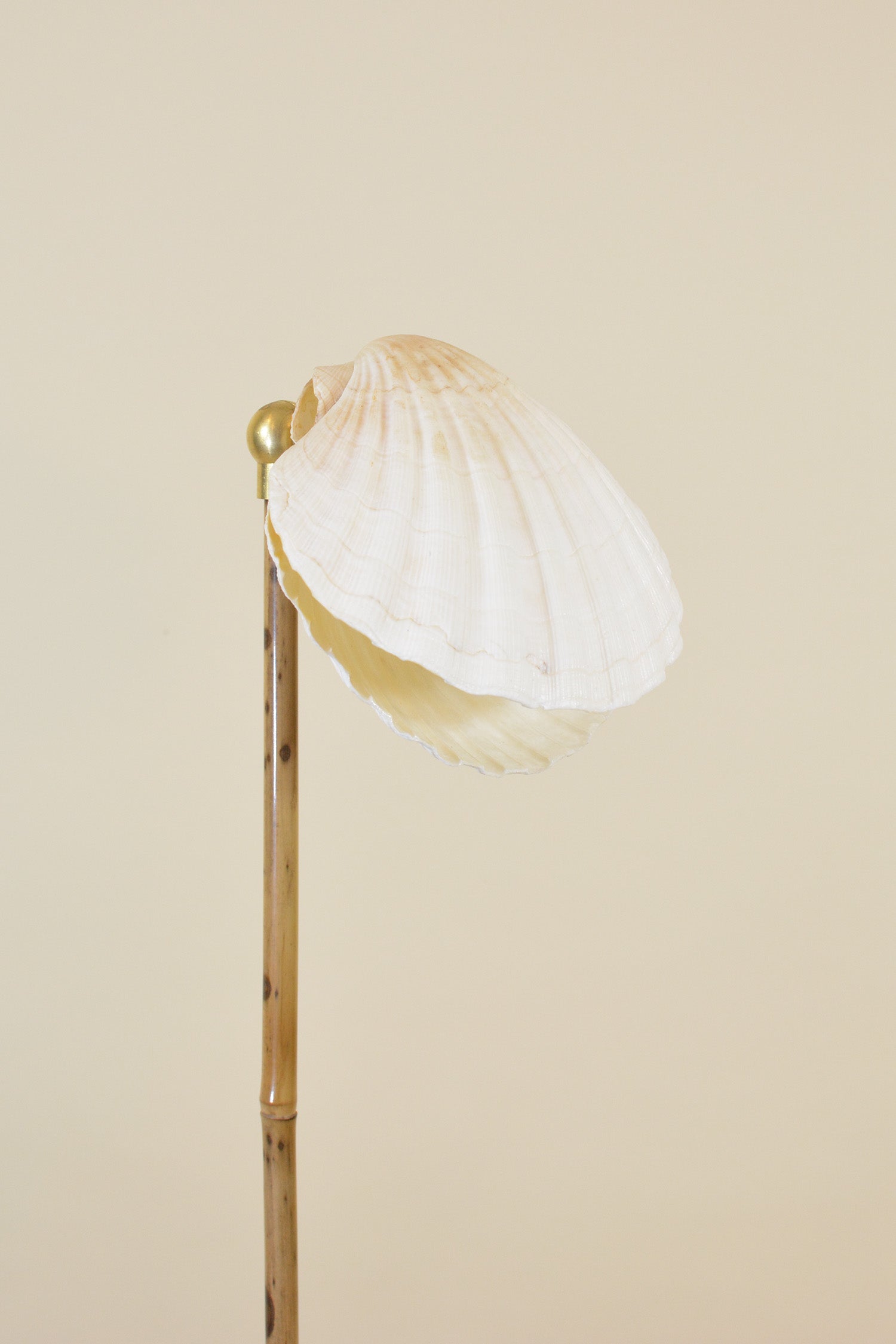 Sanremo Bamboo Reading Lamp in Coiled Black Leather and Marble with Natural Scallop Shell Shade — Model No. 027